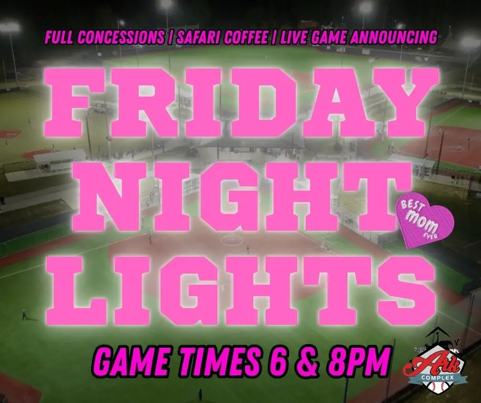 The ARK COMPLEX Friday Night Lights will feature teams from some of the best organizations in the region! Teams will play 1 FULL game with no mercy rules, complete innings or time limit! Don't miss out on this great opportunity to play out at The Ark Complex against top competition!
